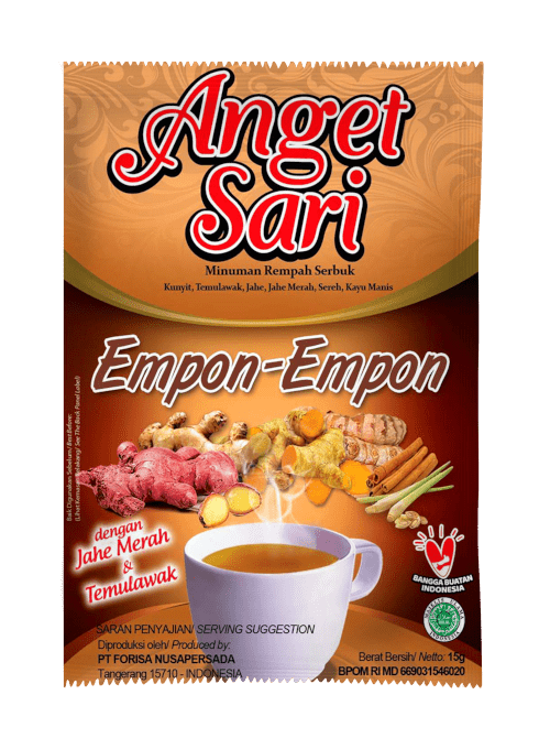 Anget Sari is an instant warming drink made from natural ginger juice and other selected spices. Packed in sachets containing powder, which dissolves easily when brewed with hot or cold water. Suitable to drink every day, to warm the body and reduce fatigue.