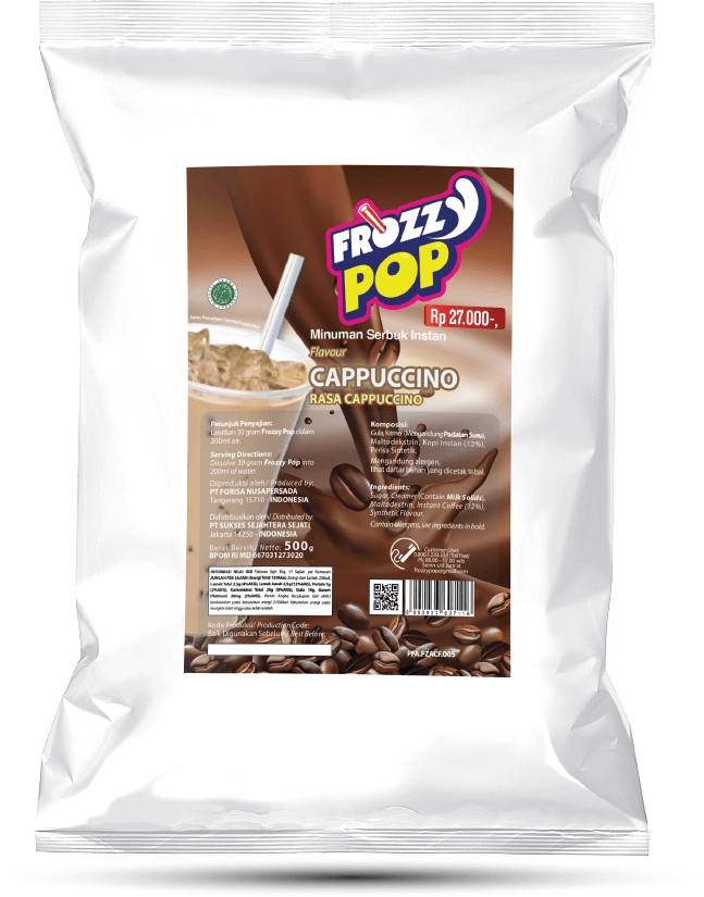 Frozzy Pop is a powdered drink with various flavors. Available in Bulky 500 gr packaging and already contains sugar.